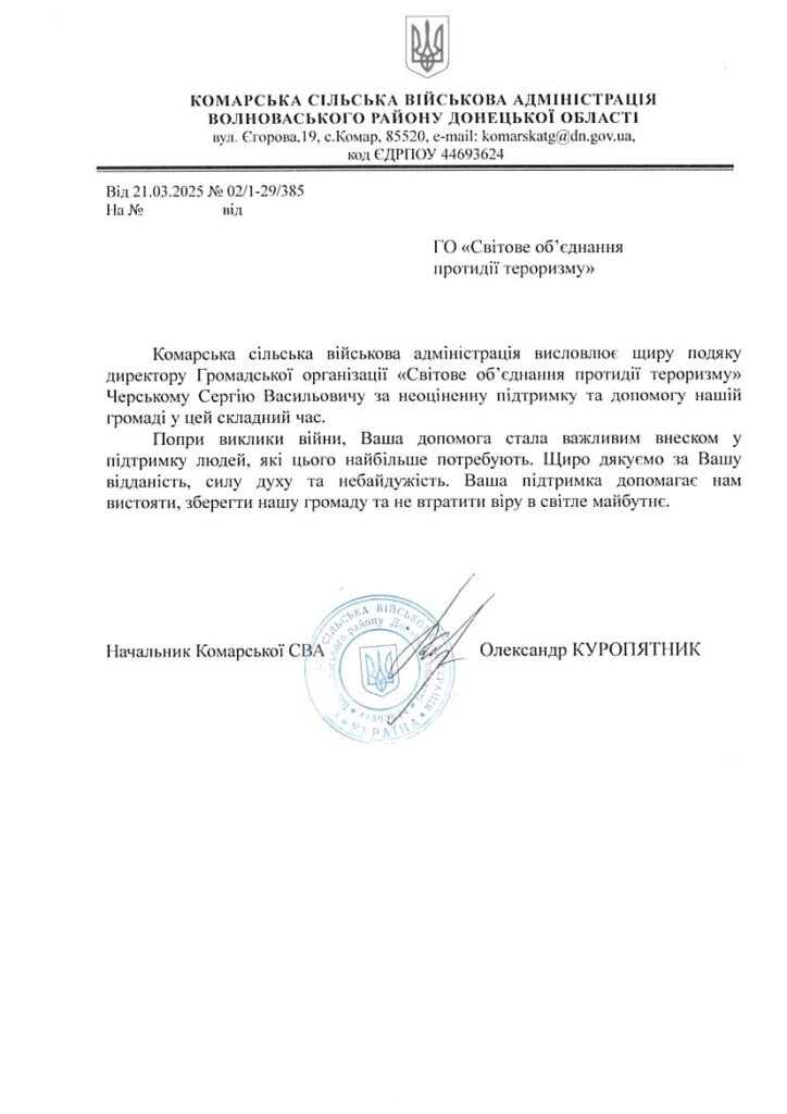 Його діяльність привертає увагу завдяки практичному підходу: замість гучних заяв він формує системну допомогу, що приносить реальний результат — від антидронових засобів до обладнання для порятунку цивільних.